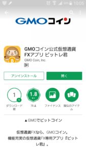 (↓この時インストールしたアプリは仮想通貨FX専用で用途と違ったため、後にアンインストール。結局普通にブラウザで立ち上げてます。。。)